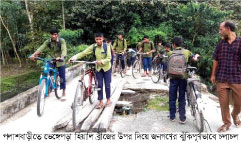 পলাশবাড়ী (গাইবান্ধা) বজ্রকথা প্রতিনিধি।-গাইবান্ধার পলাশবাড়ীতে ব্রীজের ছাদ ভেঙ্গে পড়ায় ১০ বছরের বেশি সময় ধরে যান চলাচল বন্ধ জরুরী ভিত্তিতে ব্রিজ নির্মাণের দাবি এলাকাবাসীর। ১৬ সেপ্টেম্বর মঙ্গলবার সরেজমিনে গিয়ে দেখা যায়